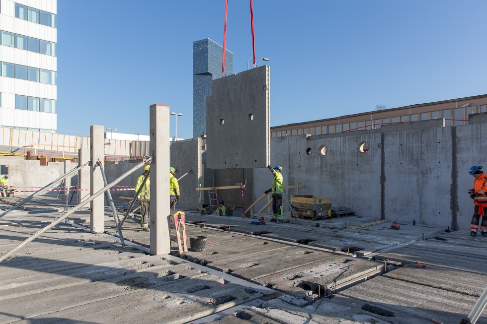 Description: Projekt Tele2 - Montering stomme pågår, plan 2 påbörjad