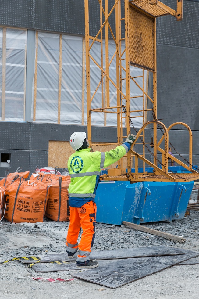 Description: Klöverns projekt Tele2s blivande huvudkontor - demontering av kranarm där en del är ca 27 m och väger ca 13 ton