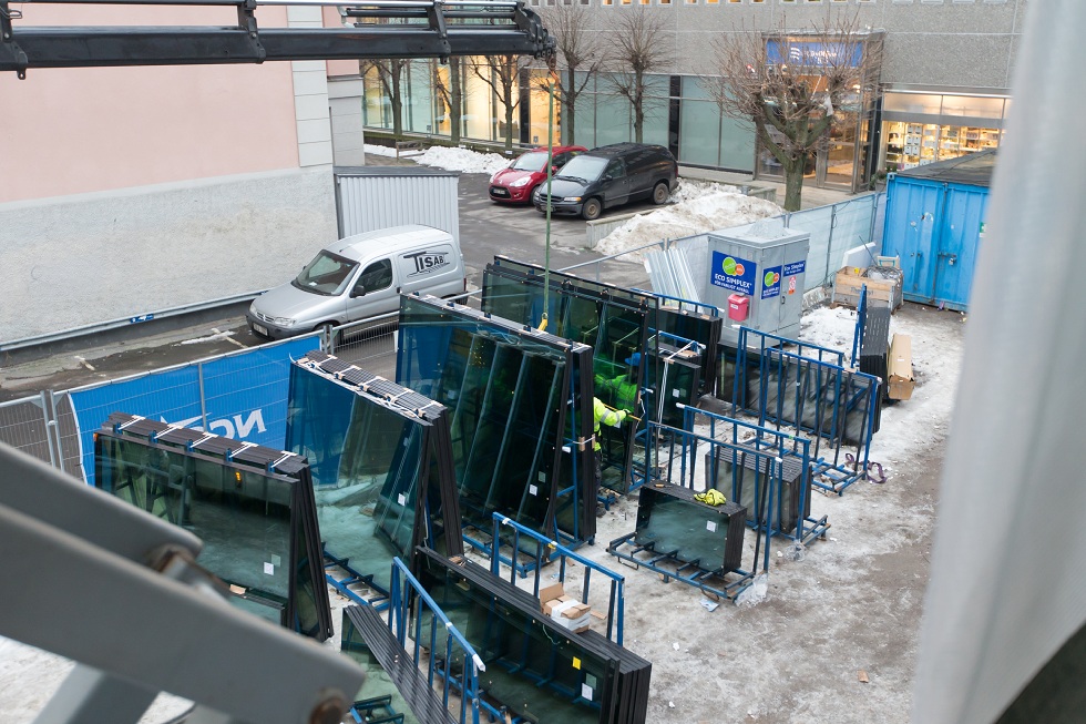 Description: Kv Tulpanen 18 - Huset börjar ta form... Montering av fönsterpartier pågår